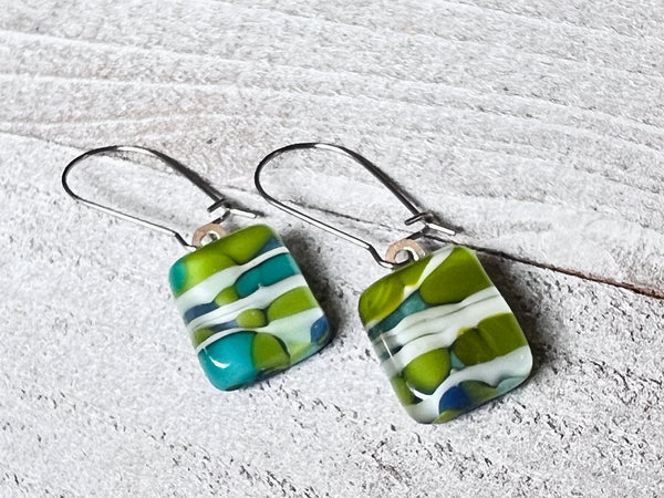 Fused Glass Earrings~Deep Blues combined with Teal and sea green