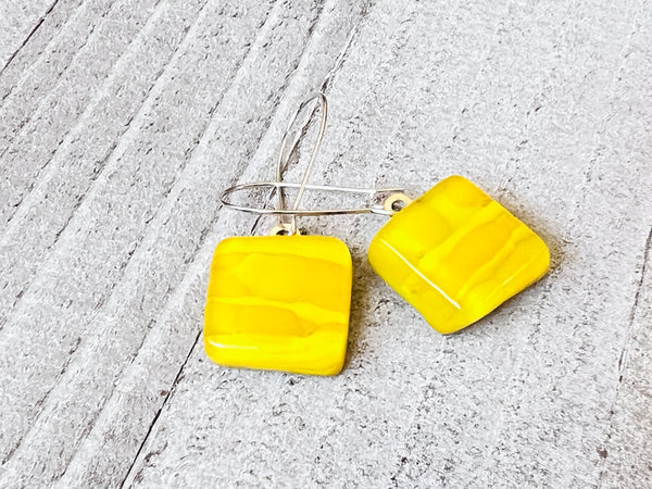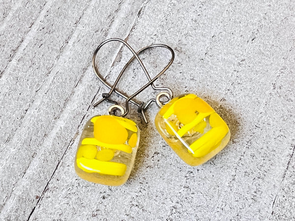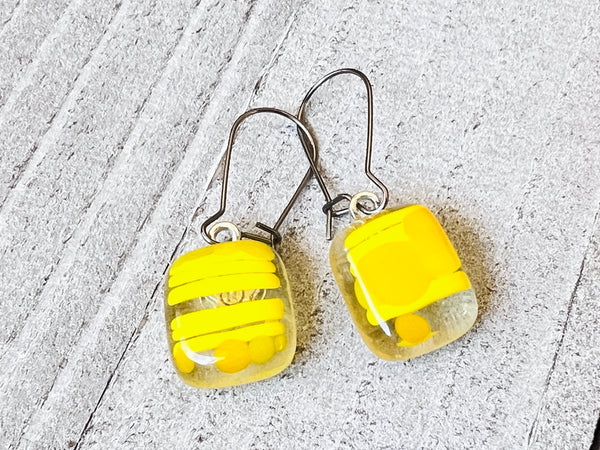 Simply Elegant Fused Glass hand painted gold Earrings~
