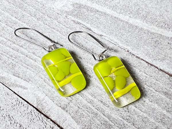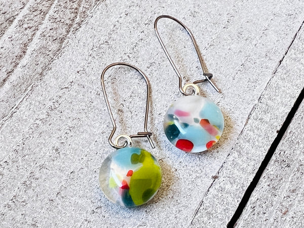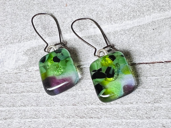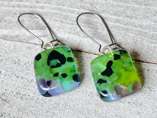 Simply Elegant Fused Glass hand painted silver Earrings~