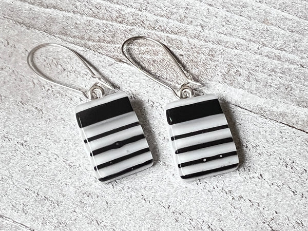 Simply Elegant Fused Glass hand painted silver Earrings~Winter White