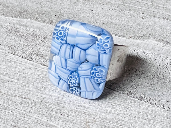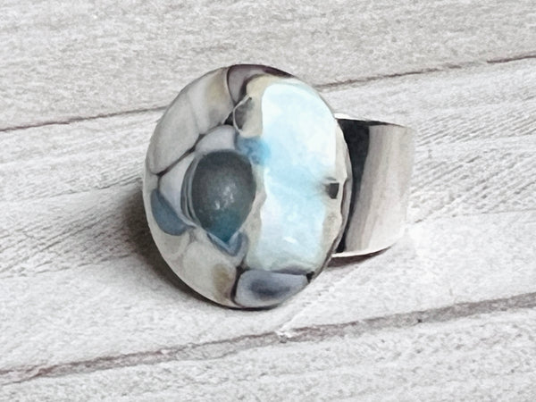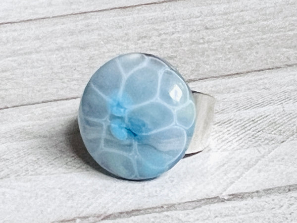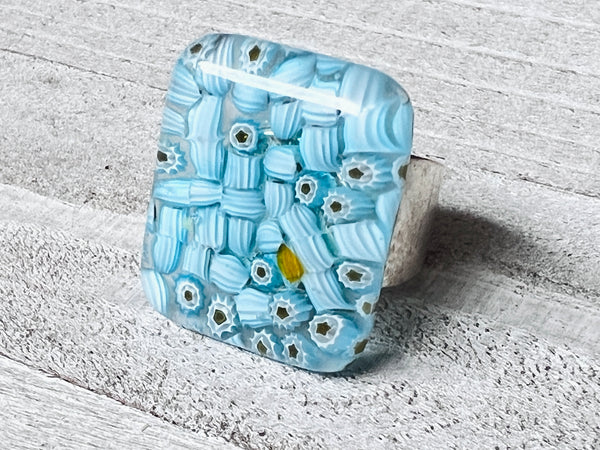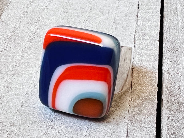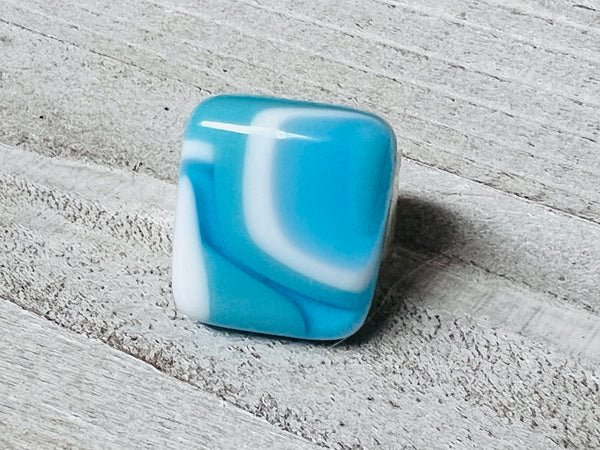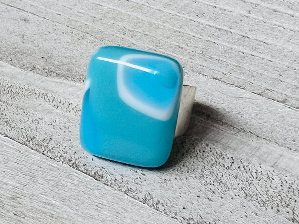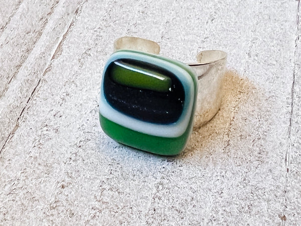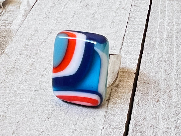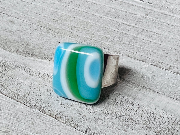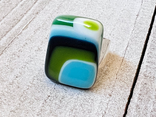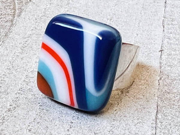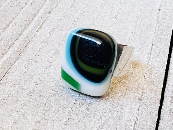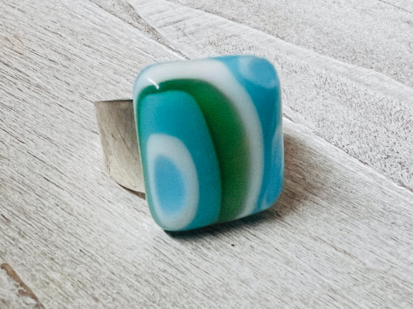Fused Glass Ring~Deep Blues combined with Teal and sea green