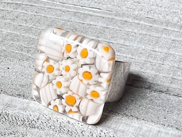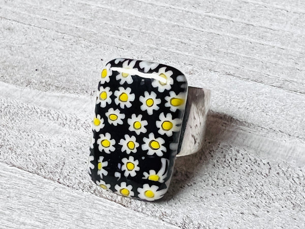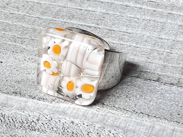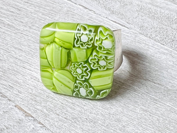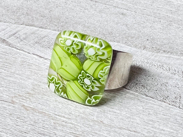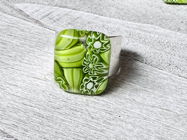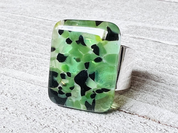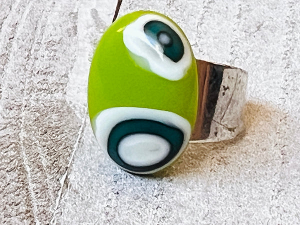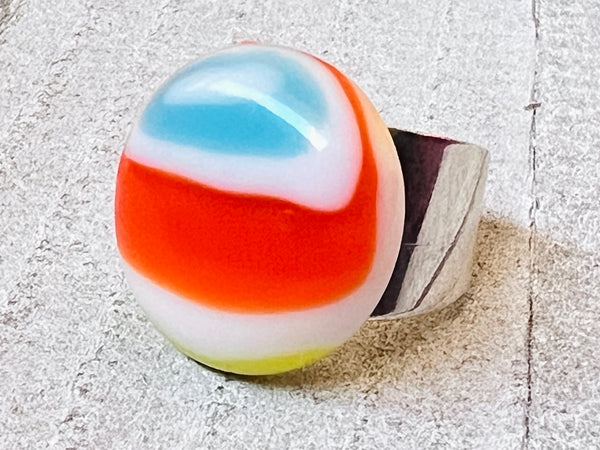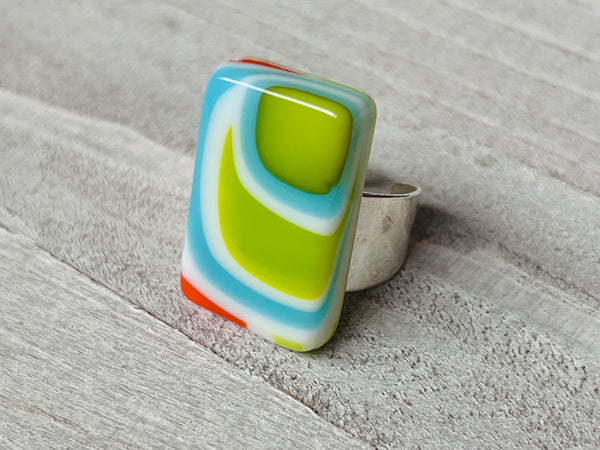 Fused Glass Adjustable Ring~ Pretty as a Peacock π¦